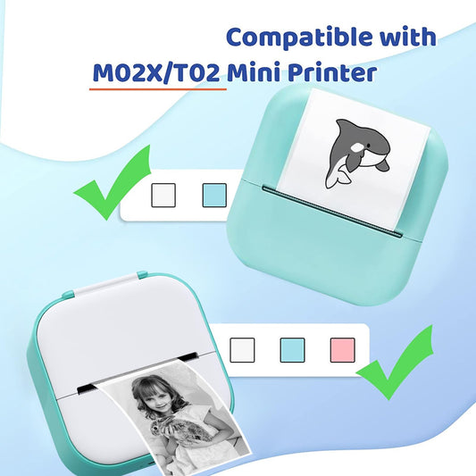 Memoking T02/M02X/M02L Papier Thermique Rose/Jaune/Bleu-5 ans non Collant 53mmx6.5m pour Journal Photo Textes Notes d'étude et plus, 3 Rouleaux.