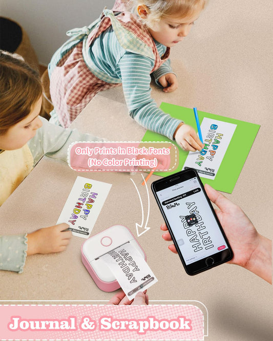 Mini Sticker Printer - T02 Small Thermal Printer for Phone, Portable Wireless Note Printer with 3 Rolls Paper for Children's Day Birthday, Compatible with iOS & Android, Pink