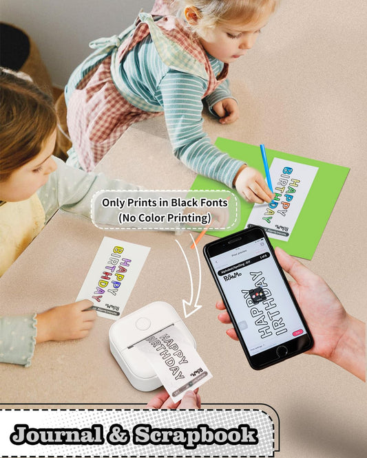 Mini Sticker Printer - T02 Portable Pocket Printer with 3 Rolls Paper, Bluetooth Photo Picture Printer for Students Birthday, Compatible with Phone & Tablet, White