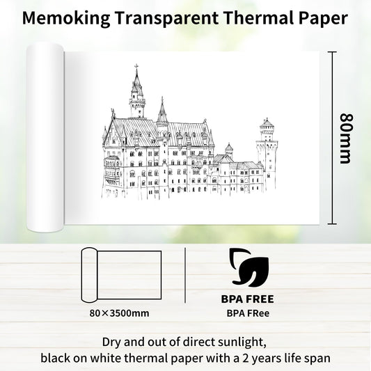 Memoking Wit zelfklevend thermisch papier, olie- en waterdicht, 80 mm x 3500 mm, voor stickerprinters, M03/M03S/M03A/M03AS/M04S/M04AS en thermische printer M833/M832/M834/M835, 2 jaar houdbaar, 3