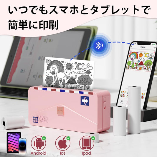 サーマルプリンター M02 ミニプリンター Memoking スマホ対応 モバイルプリンター 感熱プリンター メモプリンター コンパクトプリンター フォトプリンター Bluetooth接続 学習ノート/はがき/写真アルバム/手帳/メモ/買い物リストに使用 専用アプリ 日本語対応 3本ロール状の感熱紙が付属 フォメモ ピンク