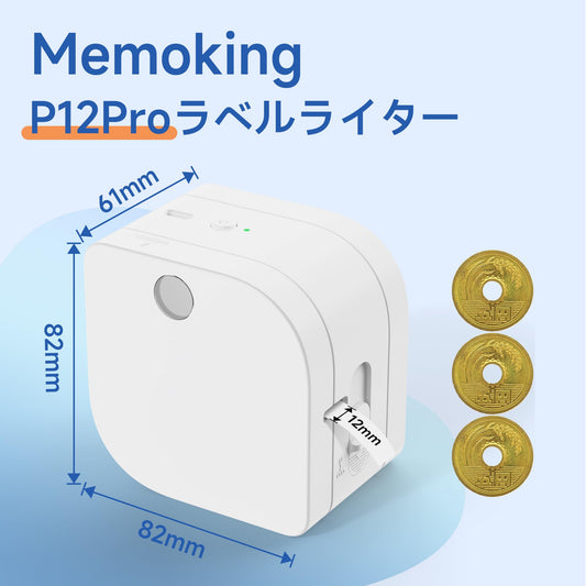 ラベルライター Memoking P12 Pro ラベルプリンター スマホ/タブレット対応 感熱/熱転写両用 Bluetooth接続 シールプリンター 日本語対応可能 Android & iOS対応 専門アプリ無料ダウンロード 家庭用/オフィス用/勉強用 手帳/資料分類/日付/宛名/整理整頓 スマホ専用ラベルライター ミニプリンター 12mm お試しラベル*1付き ホワイト お贈り物