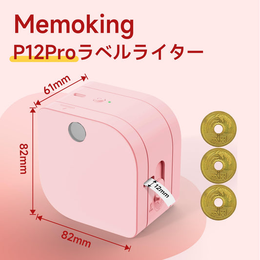 ラベルプリンター Memoking P12 Pro ラベルライター スマホ/タブレット対応 感熱/熱転写両用 Bluetooth接続 シールプリンター Android & iOS対応 専門アプリ無料ダウンロード 日本語対応可能 家庭用/オフィス用/勉強用 手帳/資料分類/日付/宛名/整理整頓 スマホ専用ラベルライター ミニプリンター 12mm お試しラベル*1付き ピンク プレゼント