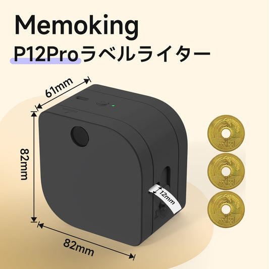 スマホ専用ラベルライター Memoking P12 Pro ラベルプリンター スマホ/タブレット対応 感熱/熱転写両用 Bluetooth接続 専門アプリ無料ダウンロード 12mm シールプリンター 日本語対応可能 Android & iOS適用 家庭用/オフィス用/勉強用 手帳/資料分類/日付/宛名/整理整頓 ミニプリンター お試しラベル*1付き ブラック プレゼント おしゃれ
