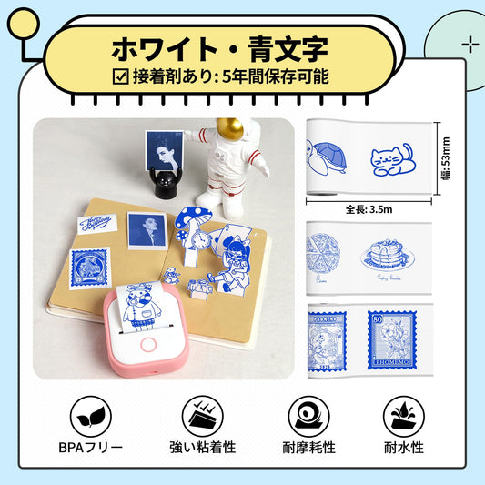 感熱ロール紙 Memoking Phomemo T02対応 純正 シール T02専用感熱紙 50mm*3.5m 3個 ノーカットロールペーパー ラベルシール 強粘着 再剥離 白地 青文字 T02 モバイルプリンター用 シール 印刷用紙 ノード/勉強/メモ/仕事/手帳/落書き/ラベル/オフィス/教育/整理収納に適用