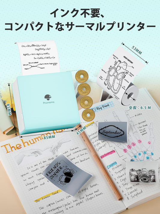 サーマルプリンター M02 ミニプリンター Memoking スマホ対応 モバイルプリンター 感熱プリンター メモプリンター コンパクトプリンター フォトプリンター Bluetooth接続 学習ノート/はがき/写真アルバム/手帳/メモ/買い物リストに使用 専用アプリ 日本語対応 3本ロール状の感熱紙が付属 フォメモ グーリン