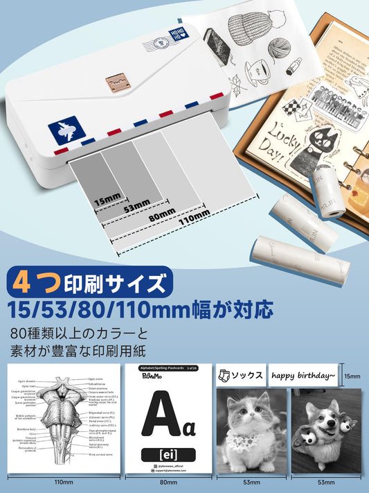 サーマルプリンター モバイルプリンター ラベルライター ラベルプリンター スマホ対応 モノクロ Memoking M04AS 感熱プリンター 15mm 53mm・80mm 110mm用紙対応 300dpi 文書/写真/ノート/手帳/ラベルに最適 クリスマスギフト フォメモ 多言語に対応 ホワイト在宅勤務 自宅学習 プレゼント
