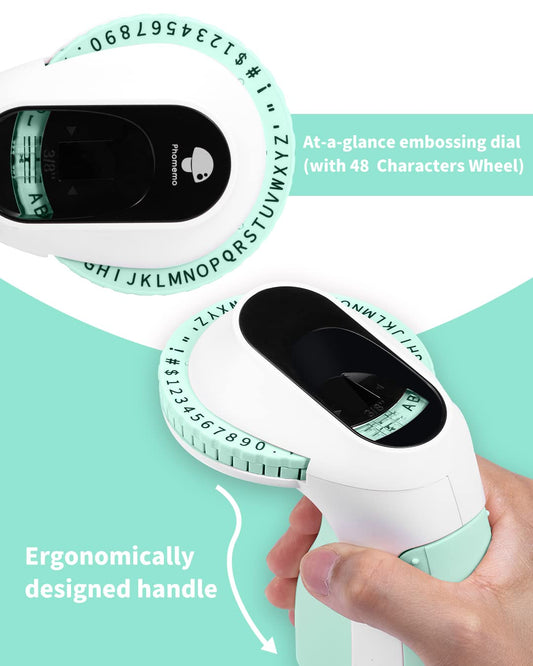 Embossing Label Maker-Memoking E975 3D Embossed Label Maker with 6 Rolls Embossing Tape, Handheld Embosser Sticker Maker, Portable Lettering Labelling Machine for Home, DIY Crafting (Green)