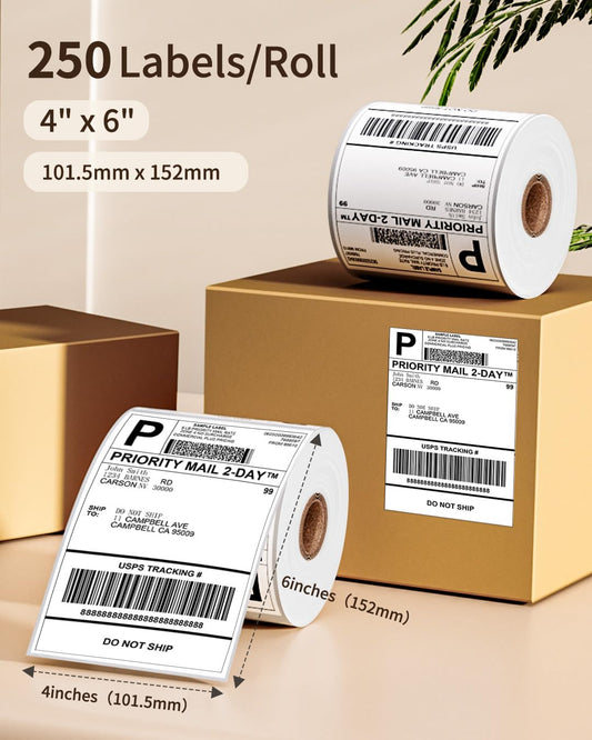 Memoking 4x6 Thermal Shipping Labels, 250 PCS for Thermal Label Printer, Suitable for Etsy, Shopify, Ebay, Amazon, Royal Mail, FedEx, Compatible with Munbyn, Rollo, Polono, Jadens, Nelko, ASprink