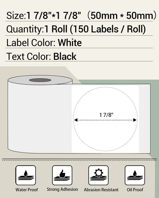 M110 etykiety okrągłe etykiety do drukarek etykiet M110, M200, M120, M220, M221, do etykiet Phomemo, etykiet termicznych, samoprzylepny, 50 x 50 mm, 140 etykiet/rolka
