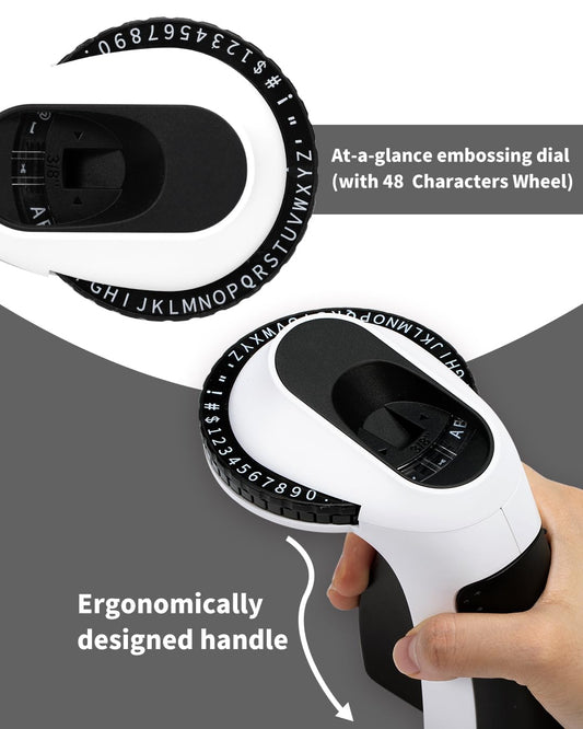 Memoking Embossing Label Maker Machine-E975 3D Embossed Label Maker with 6 Rolls Emboss Tapes, Handheld Embosser Labelling Machine, Lettering Label Maker Embossing for Home, Office and DIY (Black)