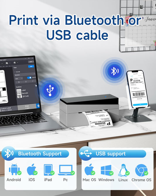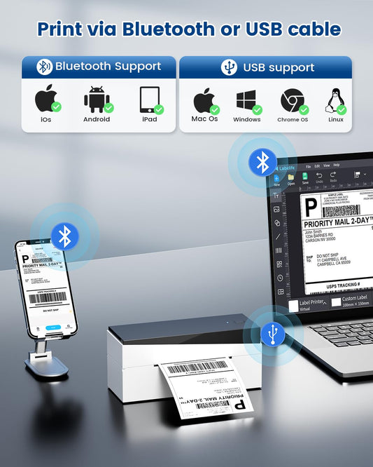 Memoking DHL Etikettendrucker Bluetooth, 4x6 Versandetiketten Drucker Für Haushalte & kleine Unternehmen, 249BT Thermodrucker Label Printer für Ebay, Etsy, UPS, Amazon, Royal Mail, Hermes, Shopify