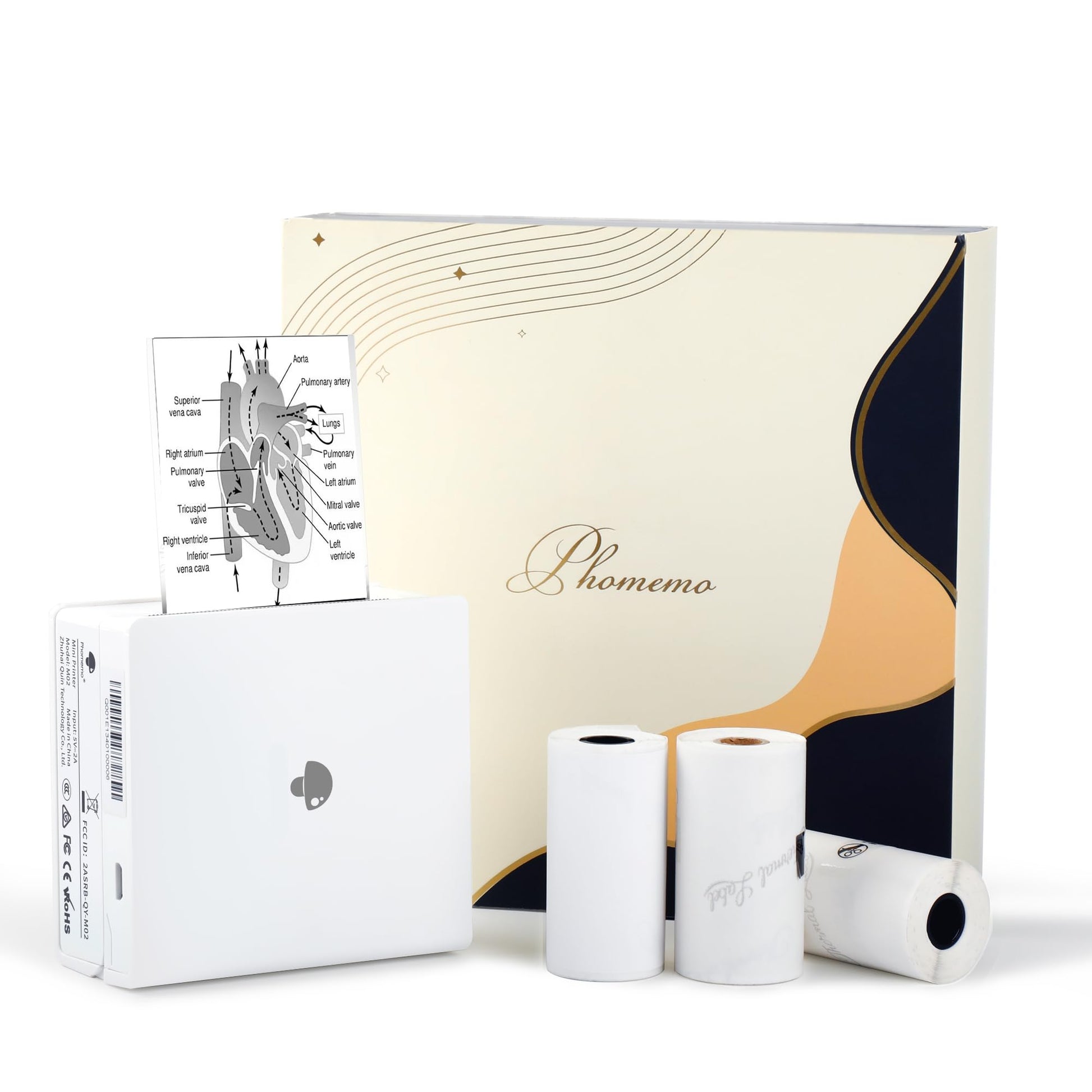 サーマルプリンター M02 ミニプリンター スマホ対応 モバイルプリンター 感熱プリンター Memoking メモプリンター コンパクトプリンター フォトプリンター Bluetooth接続 学習ノート/はがき/写真アルバム/手帳/メモ/買い物リストに使用 専用アプリ 日本語対応 3本ロール状の感熱紙が付属 フォメモ ホワイト