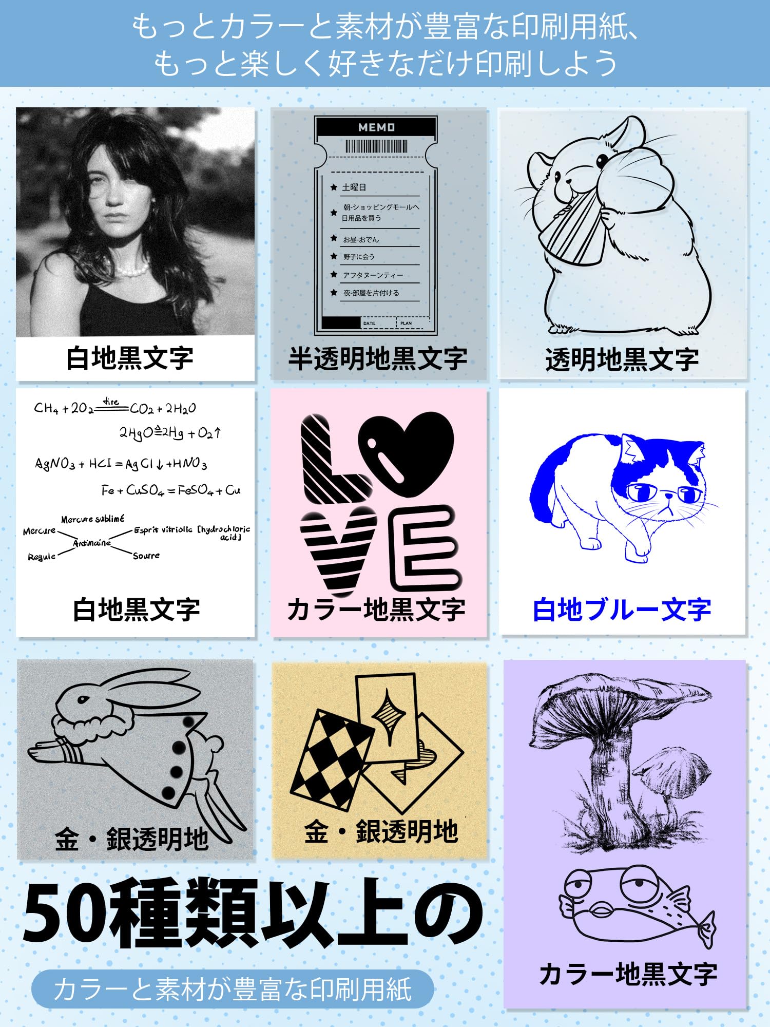 - [無料アプリ] M02ポケットプリンターの専門アプリは使いやすく機能が豊富で,しかも無料で使えます.アプリには2500以上の素材とテンプレートを提供しており,ヴィンテージ写真,ノート,メモ,領収証,手帳,買い物リスト,メッセージ,レコード,QRコード,付箋などのさまざまな種類のシールを簡単に印刷することができます.自分の好みに合わせて様々な印刷ニーズに対応可能です
