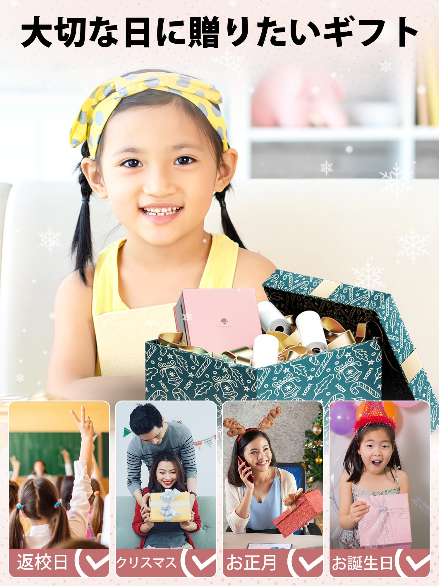 - [素敵なギフト] M02サーマルプリンターは,精巧なギフトボックスのデザインで,幅広い年齢層のユーザーに愛されています.かわいくてコンパクトなデザインなので持ち運びにも便利です.学生やオフィスワーカーだけでなく,友人や家族にとっても理想的なギフトと言えます.誕生日や登校日,感謝祭,お正月などの特別なイベントやプレゼントにぴったりです