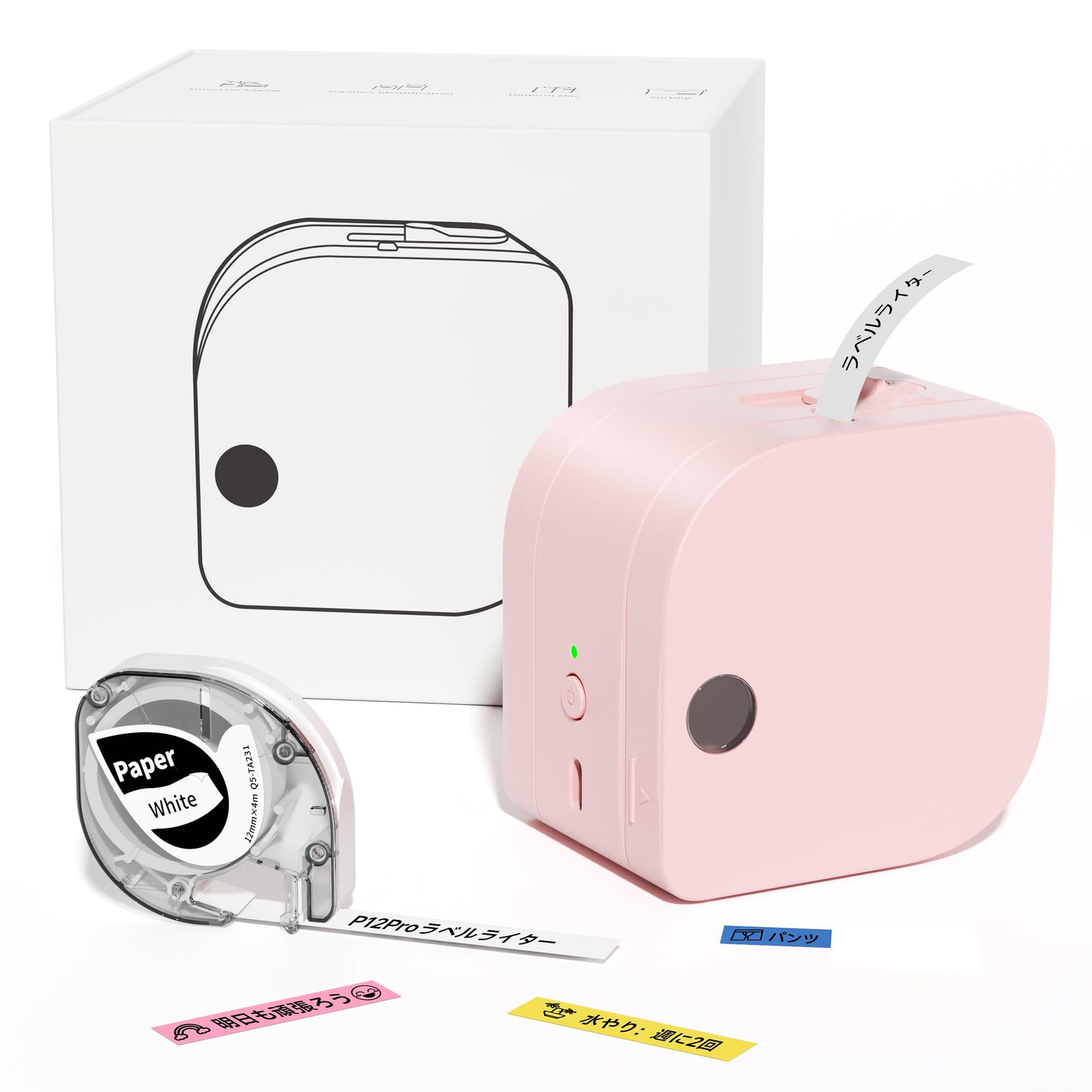 - [おしゃれなデザイン] P12Proラベルプリンターは花びらをデザインに取り入れ,可愛い見た目で若者に愛され,ブラック,ホワイト,ピンク,グリーンの4色から選ぶことができ,こどもの日や誕生日,登校日,クリスマス,お正月などの特別な日の贈り物にもぴったりです