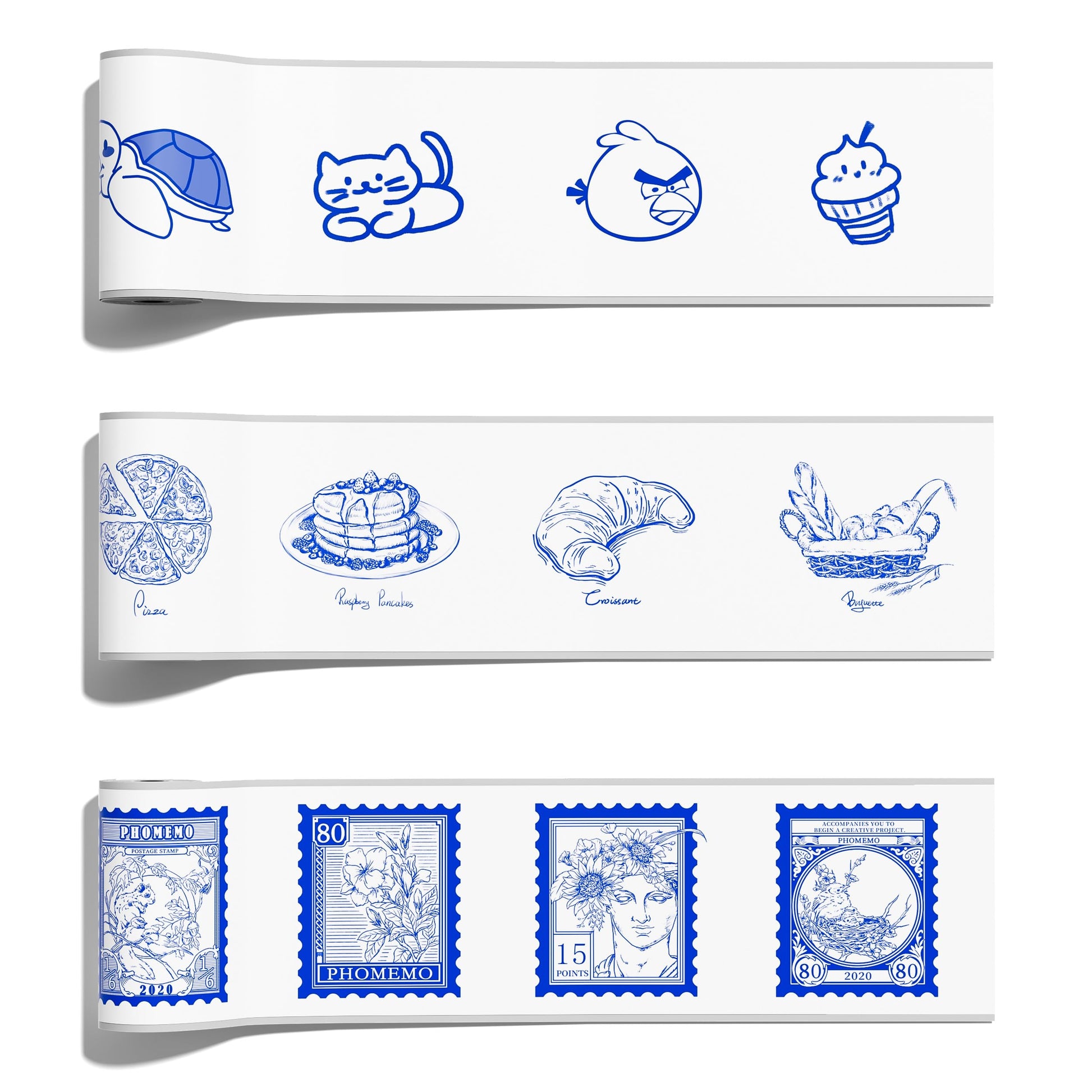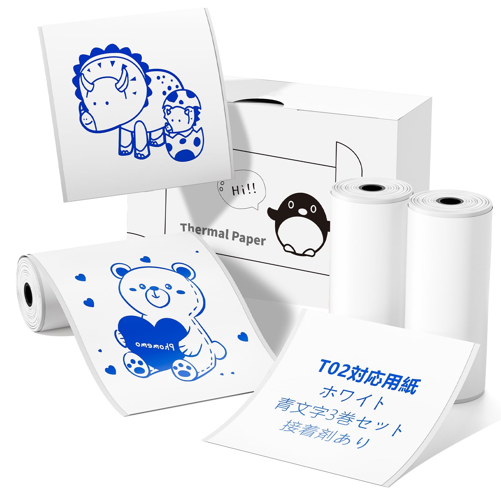 感熱ロール紙 Memoking Phomemo T02対応 純正 シール T02専用感熱紙 50mm*3.5m 3個 ノーカットロールペーパー ラベルシール 強粘着 再剥離 白地 青文字 T02 モバイルプリンター用 シール 印刷用紙 ノード/勉強/メモ/仕事/手帳/落書き/ラベル/オフィス/教育/整理収納に適用