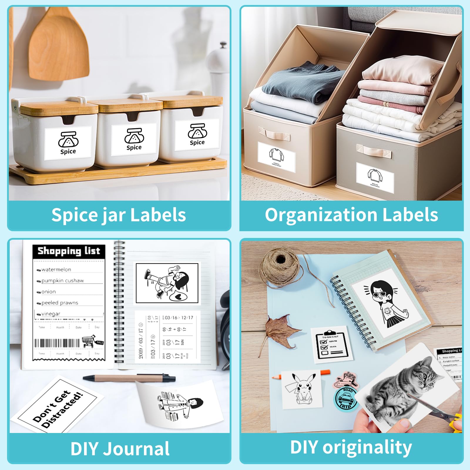 Biały samoprzylepny papier termiczny 107 mm x 3500 mm, kompatybilny z drukarką Phomemo M03/M03S/M03A/M03AS/M04AS, odporny na olej i wodę, biały papier termiczny, trwałość 2 lata, 3 rolki