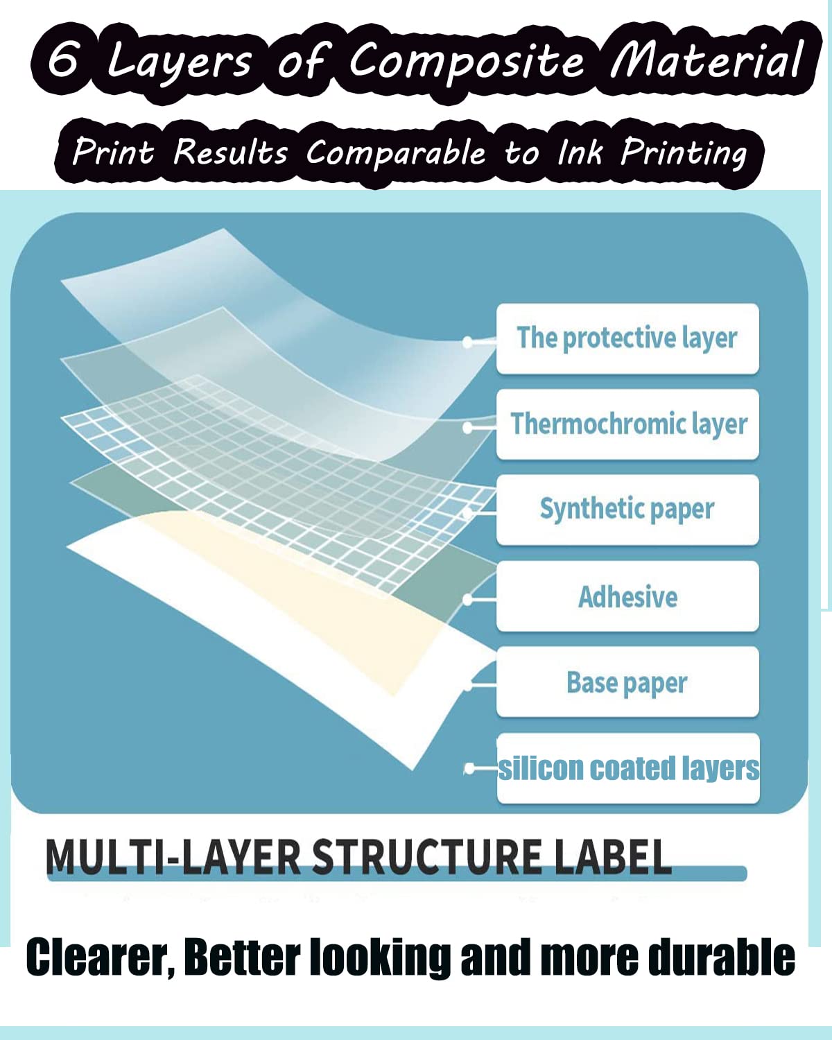 - [Print Clearly]Each sticker paper is made of 6 layers of high quality composite material, can print clear patterns, photos and fonts, the effect is comparable to ink printing. That works out to less than $0.02 a thermal sticker paper