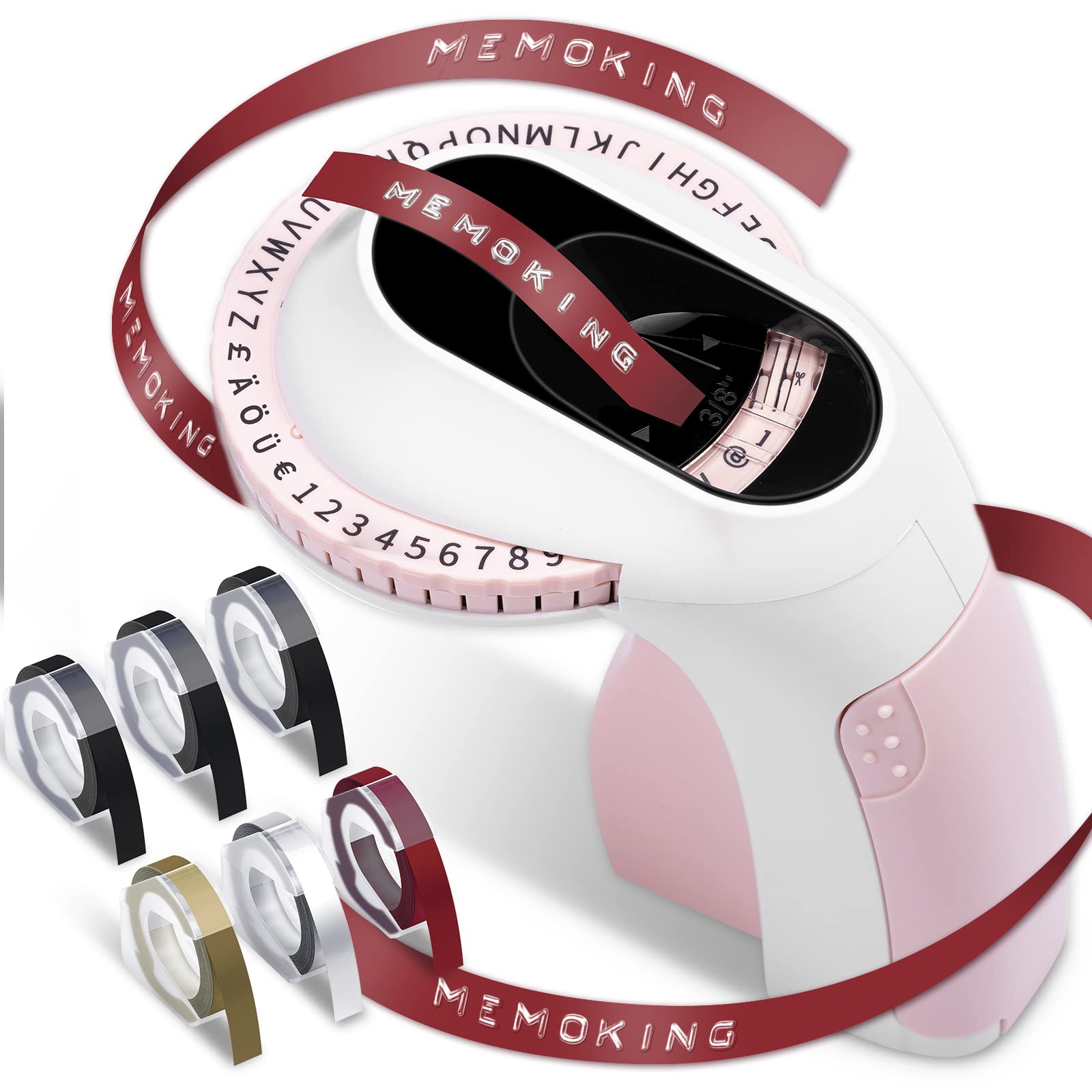 Memoking Beschriftungsgerät - 3D Prägegerät E975 mit 6 Rollen Prägegerät Etiketten, Handgerät Etikettiergerät mit Prägung, Tragbare Beschriftungsgerät Prägegerät für Organisation, DIY (£/€, Ä, Ö, Ü)