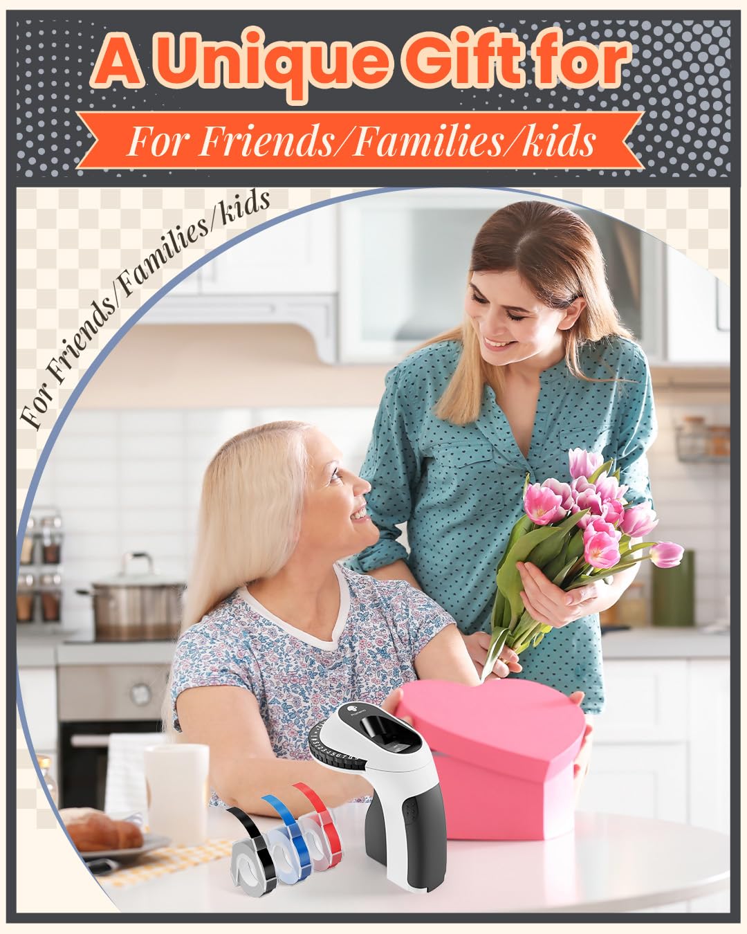 Memoking E975 Machine à étiqueter autocollante avec 3 rouleaux de rubans de gaufrage, imprimante d'étiquettes 3D avec gaufrage, imprimante d'étiquettes portable pour organisation, bricolage.