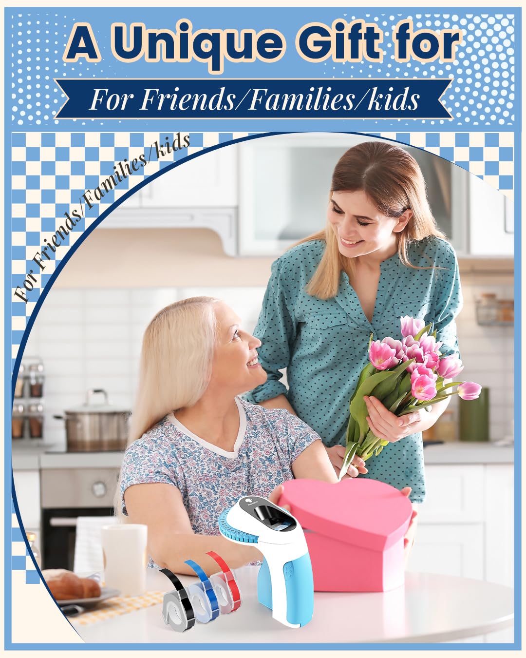 Memoking E975 Zelfklevende 3D-reliëfmachine, etiketten met 3 rollen reliëf, draagbare labelprinter met reliëf, draagbare labelprinter voor organisatie, doe-het-zelf