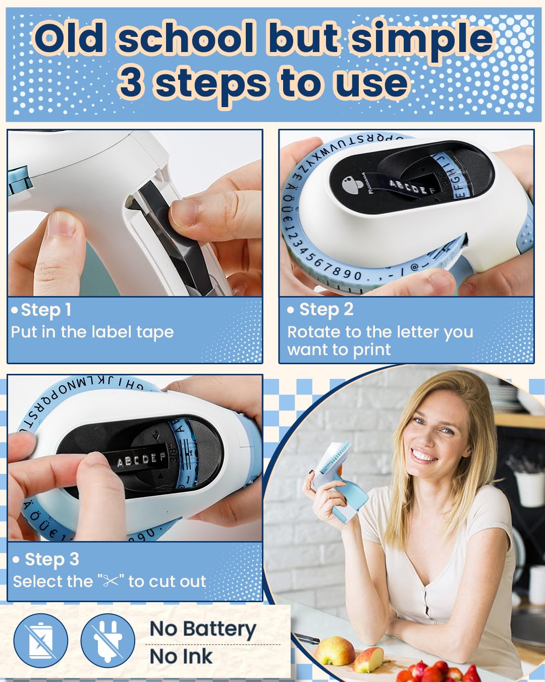 - Gemak Draagbare Label Maker Embossing Dials -Ons embosser label printer de wijzerplaat is ontworpen met nuttige 48 tekens wiel, print letters, cijfers en dagelijkse symbolen.