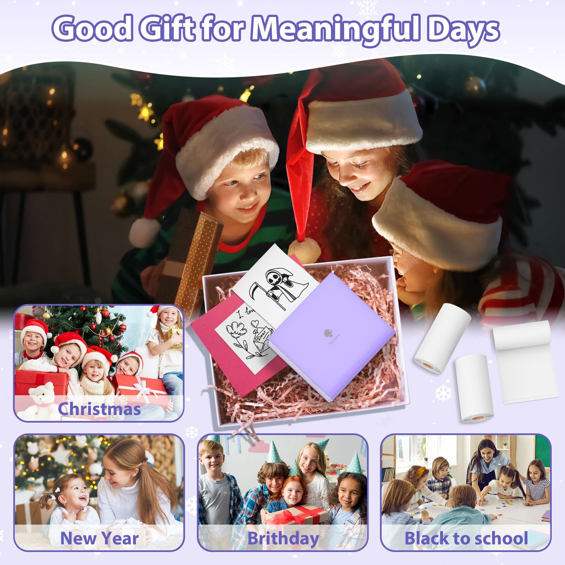 - [素敵なギフト] M02サーマルプリンターは,精巧なギフトボックスのデザインで,幅広い年齢層のユーザーに愛されています.かわいくてコンパクトなデザインなので持ち運びにも便利です.学生やオフィスワーカーだけでなく,友人や家族にとっても理想的なギフトと言えます.誕生日や登校日,感謝祭,お正月などの特別なイベントやプレゼントにぴったりです