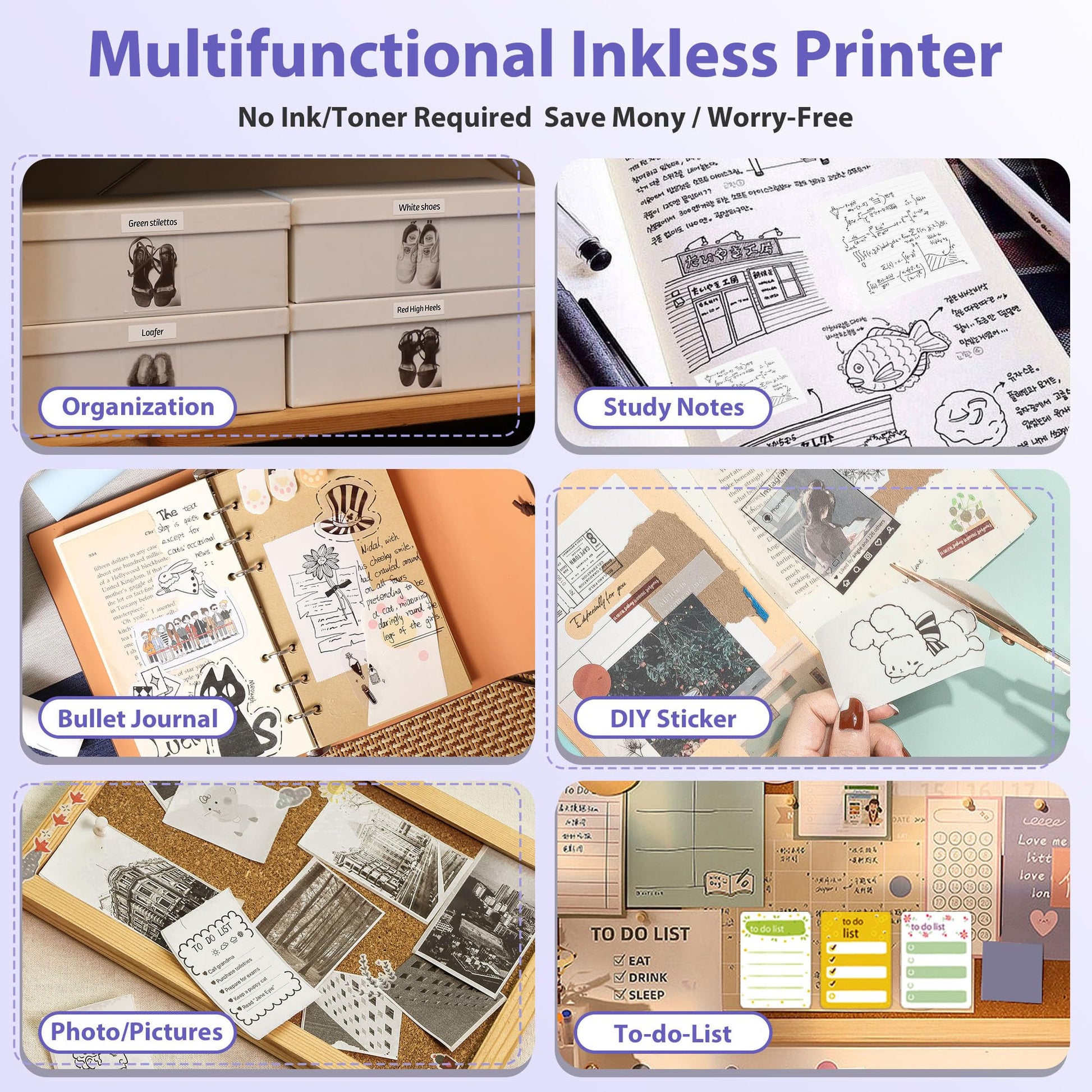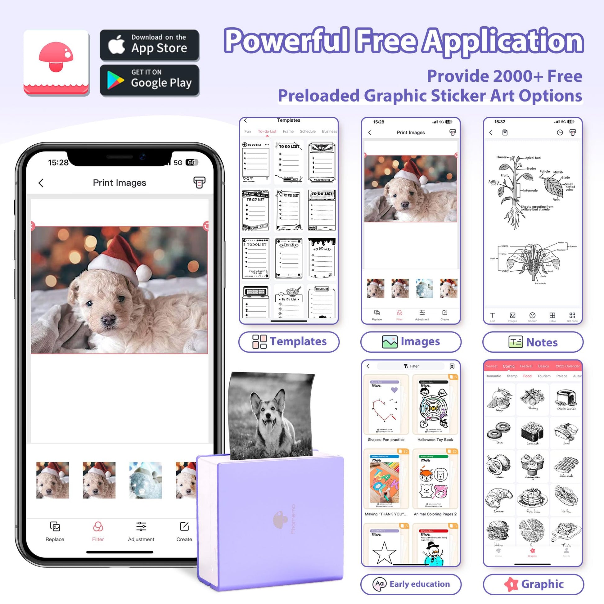 - [勉強効率の向上] M02ミニプリンターを使って勉強を楽しめましょう!写真やスキャンしたデータから必要な情報をすぐにメモとして印刷可能です.これにより,学習や仕事に関連する情報を手元に持つことができ,メモを印刷して目に留めることで,素早くアクセスすることができます.新しい機能「幼児教育」も搭載されており百科事典,カレンダー,単語,動物紹介,パズルゲームなどのカードテンプレートがも利用可能ですので,親子で一緒に学びながら楽しむことができます