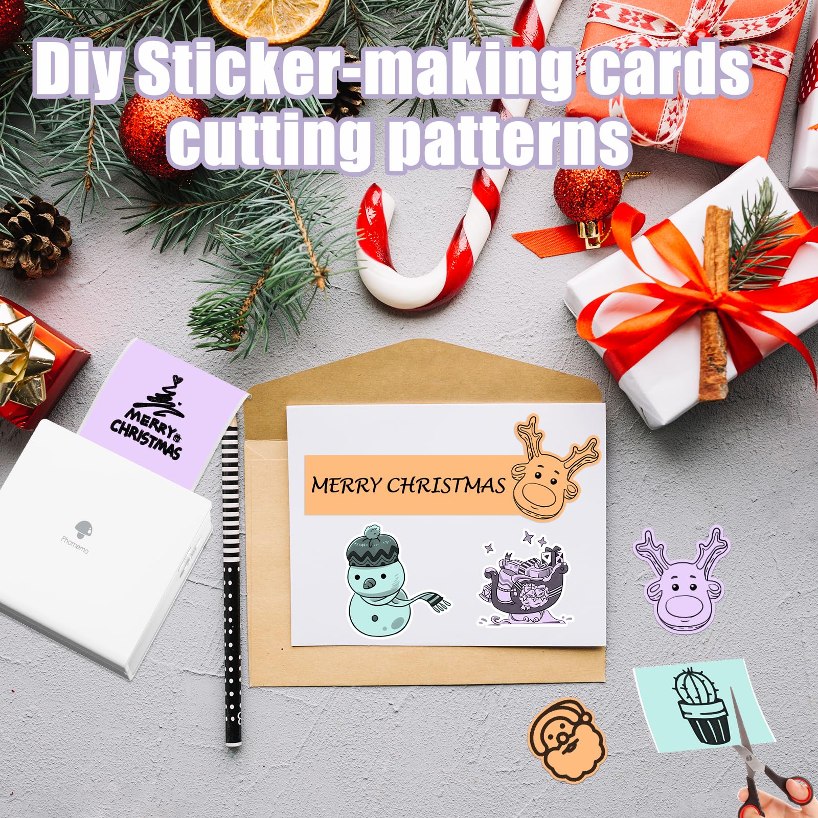 - [Multiple Uses]Connect your phone to the [Phomemo] APP and freely edit the content and paper size, cutting sticker paper patterns with scissors. The printer paper is suitable for notes, labels, journal, photos, study plans, shopping lists, gift cards, address information, DIY creations, QR codes, and anything you want to print