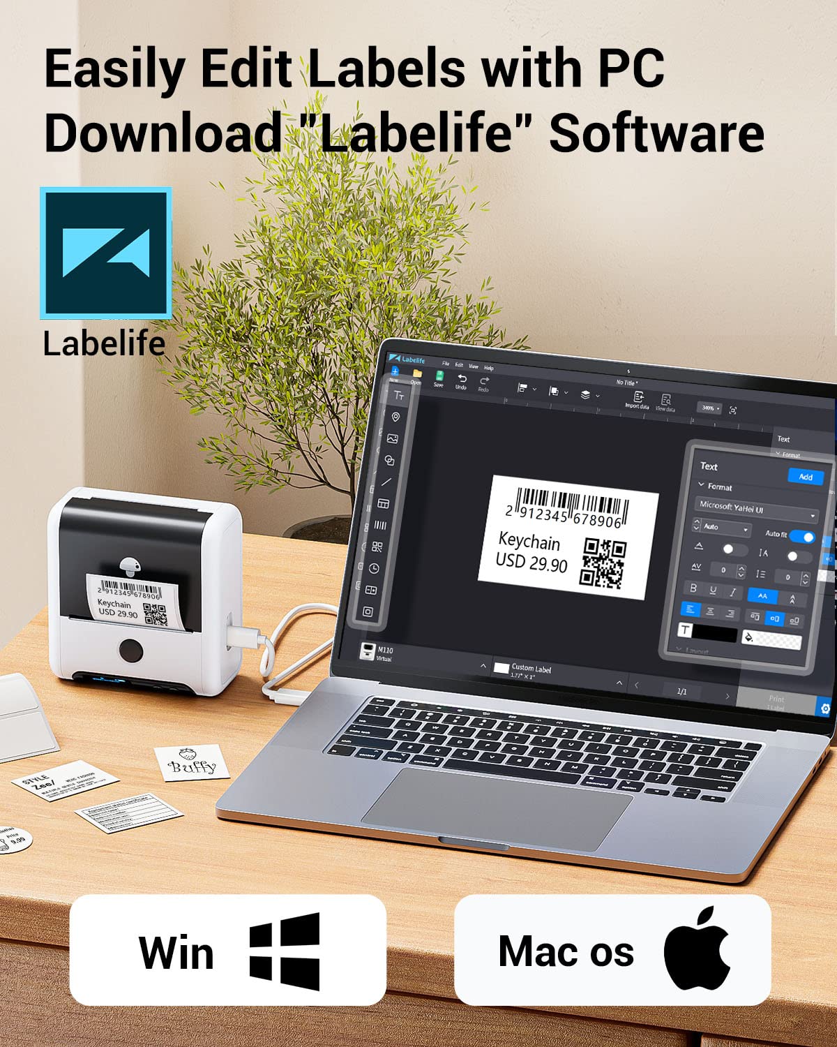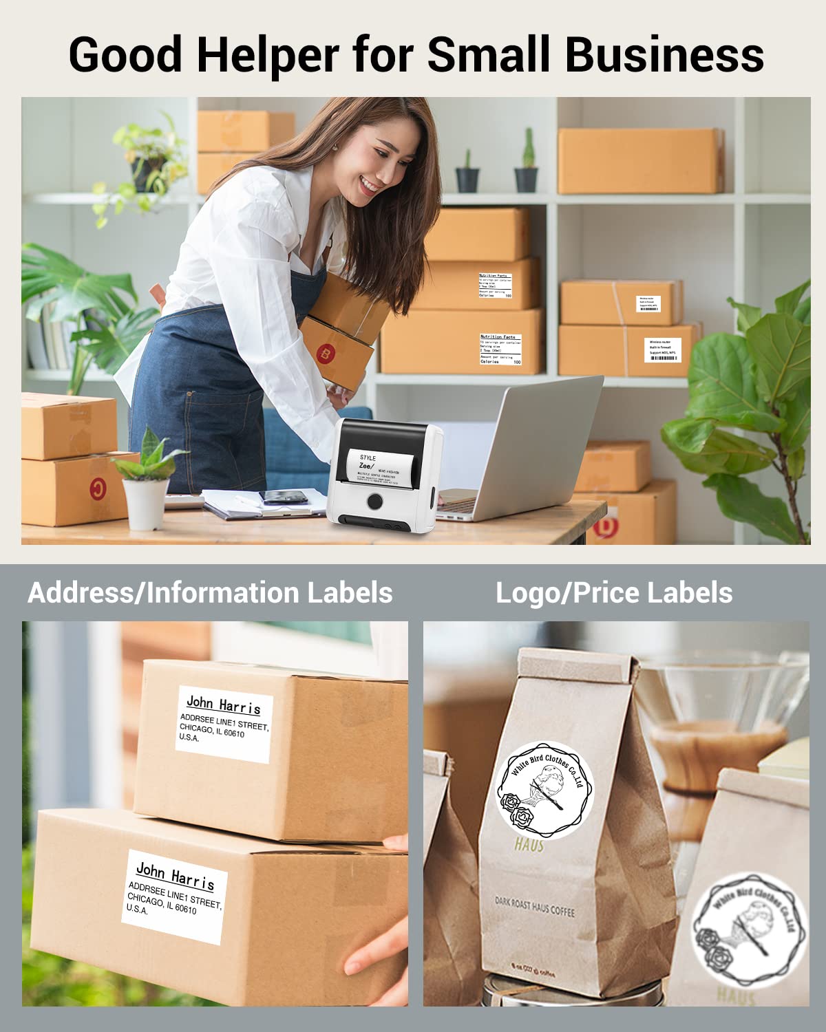 Memoking M200 imprimante d'étiquettes, étiqueteuse Thermique Portable pour Petites Entreprises, étiquettes de Prix, Codes-Barres de Produits, Compatible avec Les Smartphones et Les PC - Blanc
