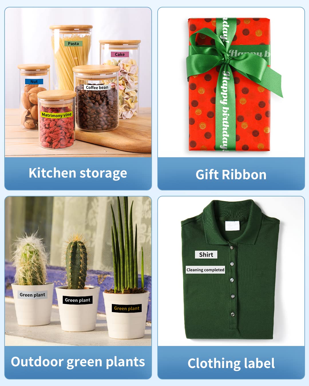 - Wide range of uses - The P12 Pro label maker sets itself apart from other label makers that can only print stickers. Using thermal transfer technology, it can create iron-on labels, print names on clothing, and produce ribbon labels to decorate gift boxes. But that's not all! With its ability to print color sticker label tepes, this label maker is perfect for organizing items at home and office. Keep your items organized and easily visible at a glance