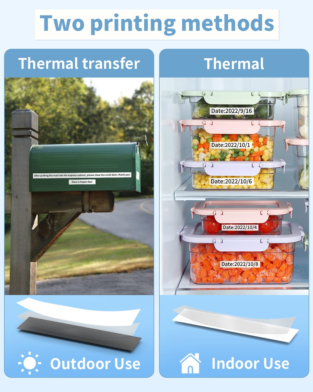 - Dual mode printing - With the P12 Pro sticker maker machine, you have the flexibility to print both thermal and thermal transfer labels. Thermal labels are a cost-effective option that produces clear, crisp black text, making them perfect for bulk indoor labeling, such as kitchen storage items. Choose thermal transfer labels, which are highly durable and resistant to wear, scratches, and extreme temperatures. They're also suitable for outdoor signage, making them a versatile choice