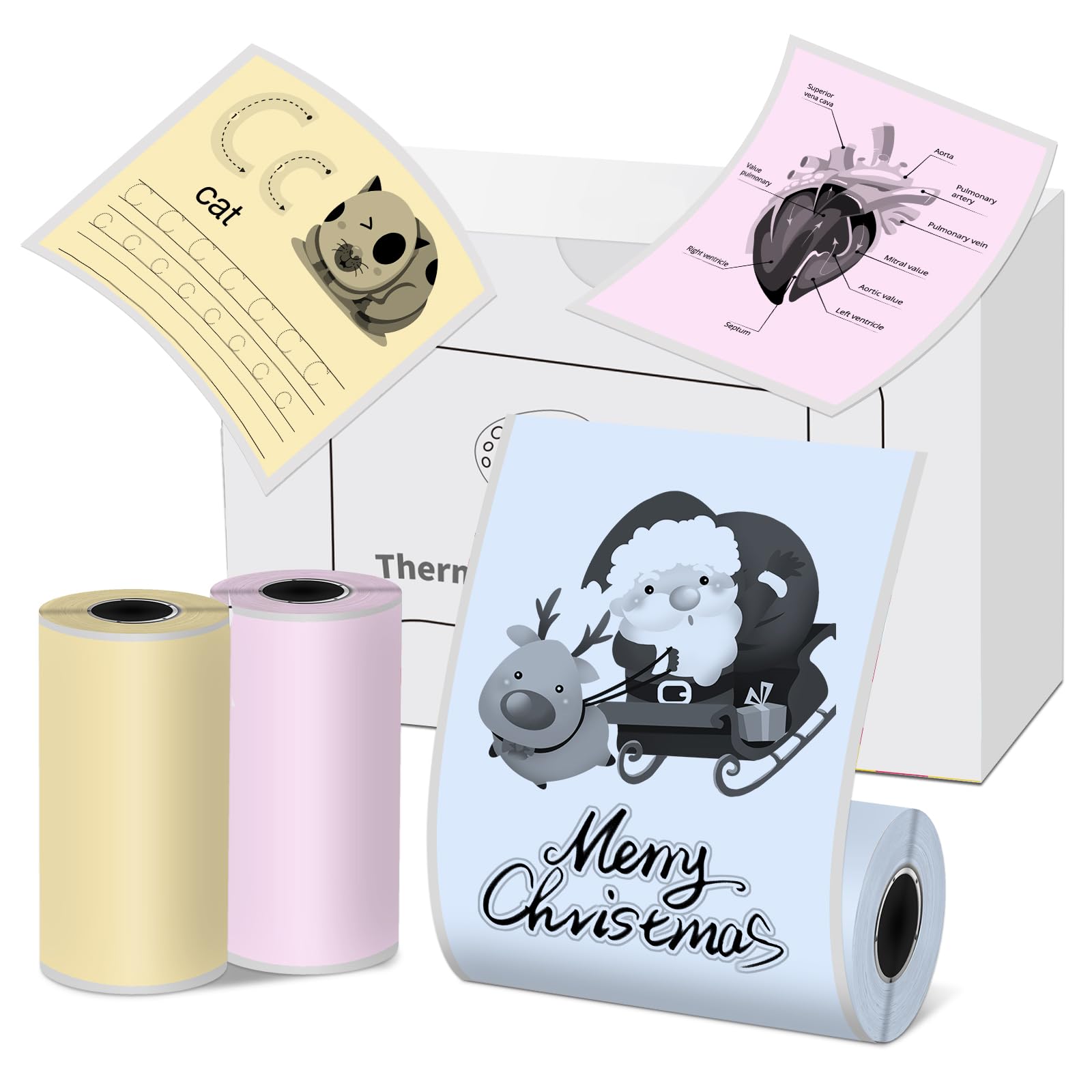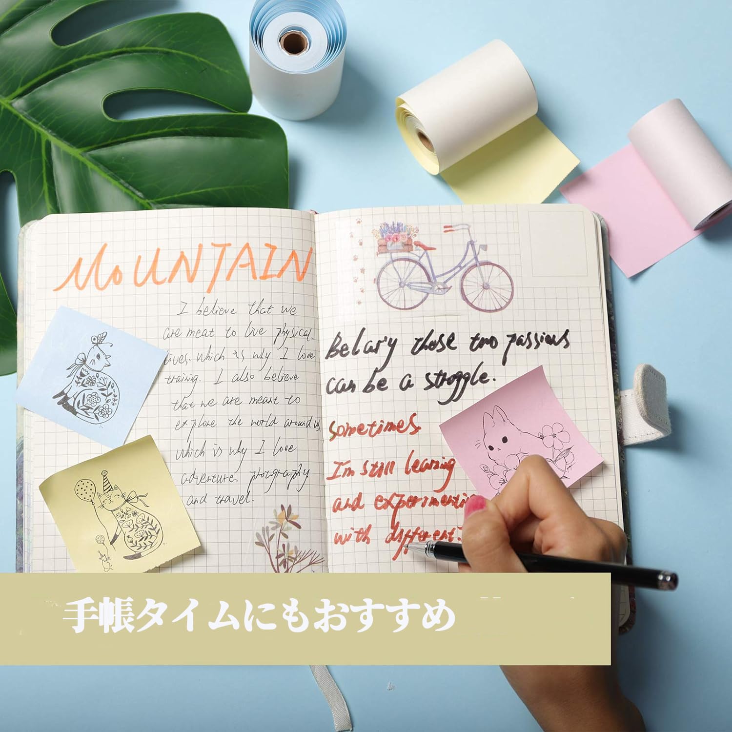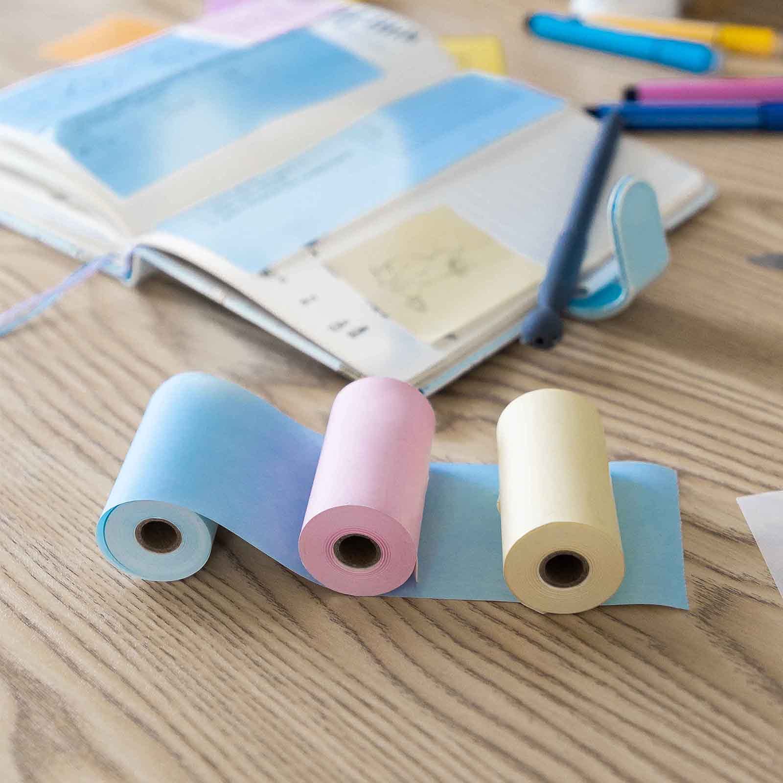 Memoking T02 プリンタ 専用紙 感熱印刷紙 感熱紙 イエロー/ピンク/ブルー 黒文字 50mm*3.5m 粘着性なし 防水 5年保存 3巻入 T02 モバイルプリンター用 シール 印刷用紙 ノード/勉強/メモ/仕事/手帳/落書き/ラベル/オフィス/教育/整理収納に適用