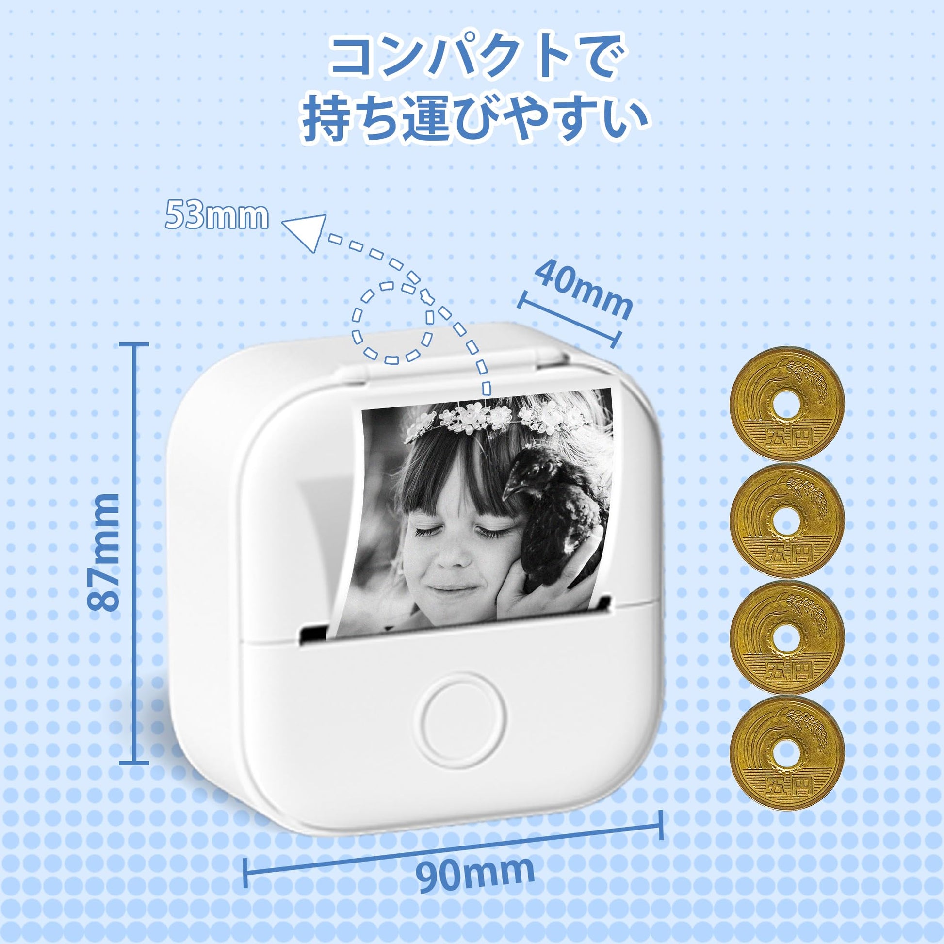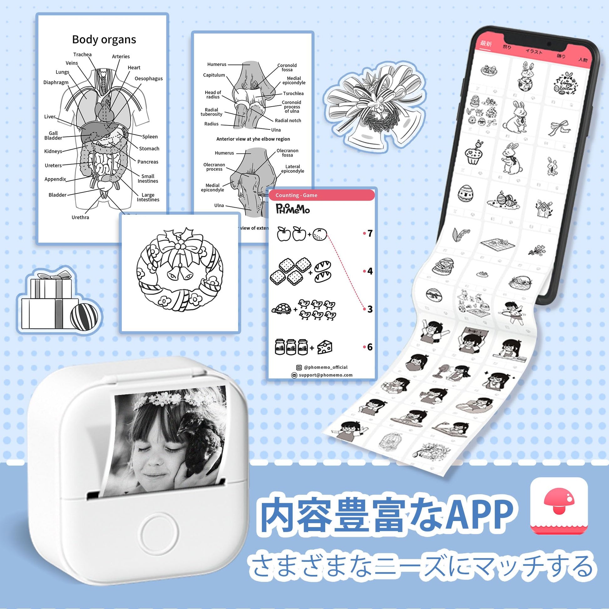 Memoking T02 ミニプリンター サーマルプリンター スマホプリンター メモプリンター 感熱プリンター 手帳プリンター 勉強用 プリンター 203dpi スマホ専用 モノクロ 感熱式 フォトプリンター 充電でき ギフト プレゼント葉書 写真 メモ 手帳 リスト 予定表 53mm幅 自宅学習 プレゼント 携帯プリンター フォメモ カラーロール紙3個付 ホワイト