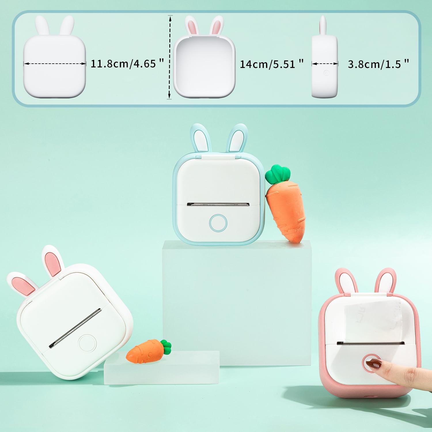 Memoking T02 Funda Protectora en Forma de Oreja de Conejo Funda Protectora de Silicona Suave para Impresora, Compatible con T02 Mini Impresora portátil inalámbrica Bluetooth de Mano, Blanco