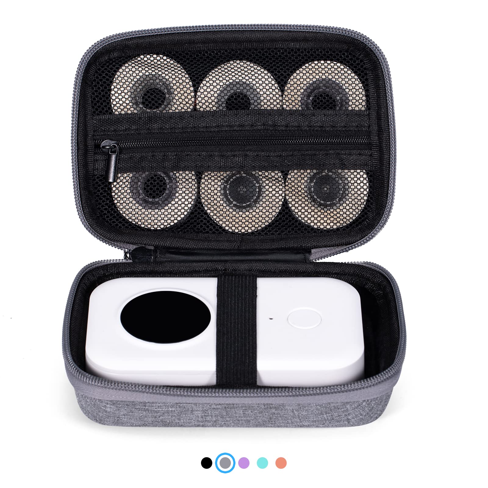 Memoking T02 Hard Storage Case - Compatible with Phomemo D30, SUPVAN E10, NIIMBOT D11, JADENS D110 and More, with Zipper Mesh Pocket, Waterproof Shockproof Case, Grey (Only Case)