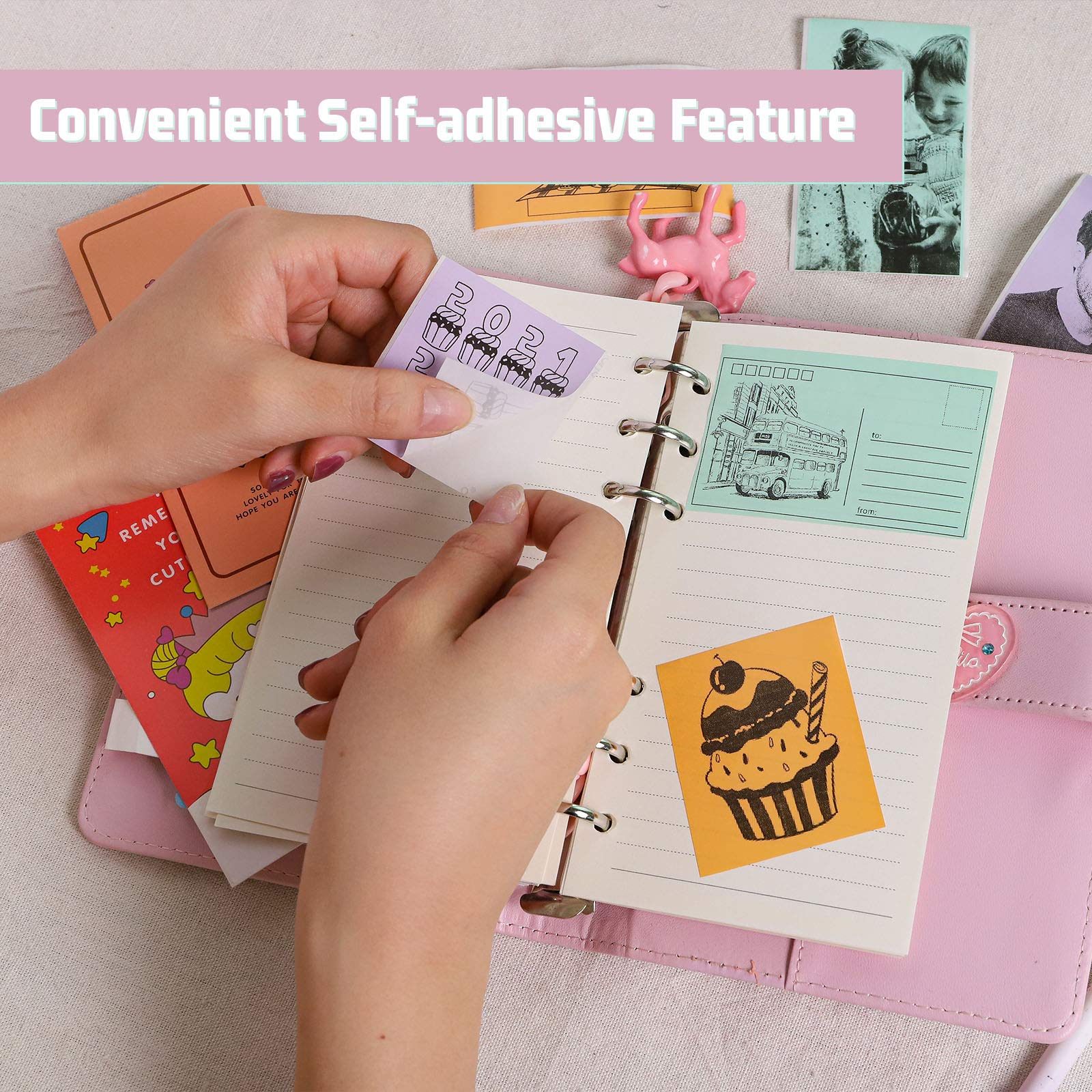 Memoking T02/M02X/M02L paars/groen/oranje thermisch papier - 20 jaar kleverig 50mmx3,5m voor journal fototeksten studienotities en meer, 3 rollen