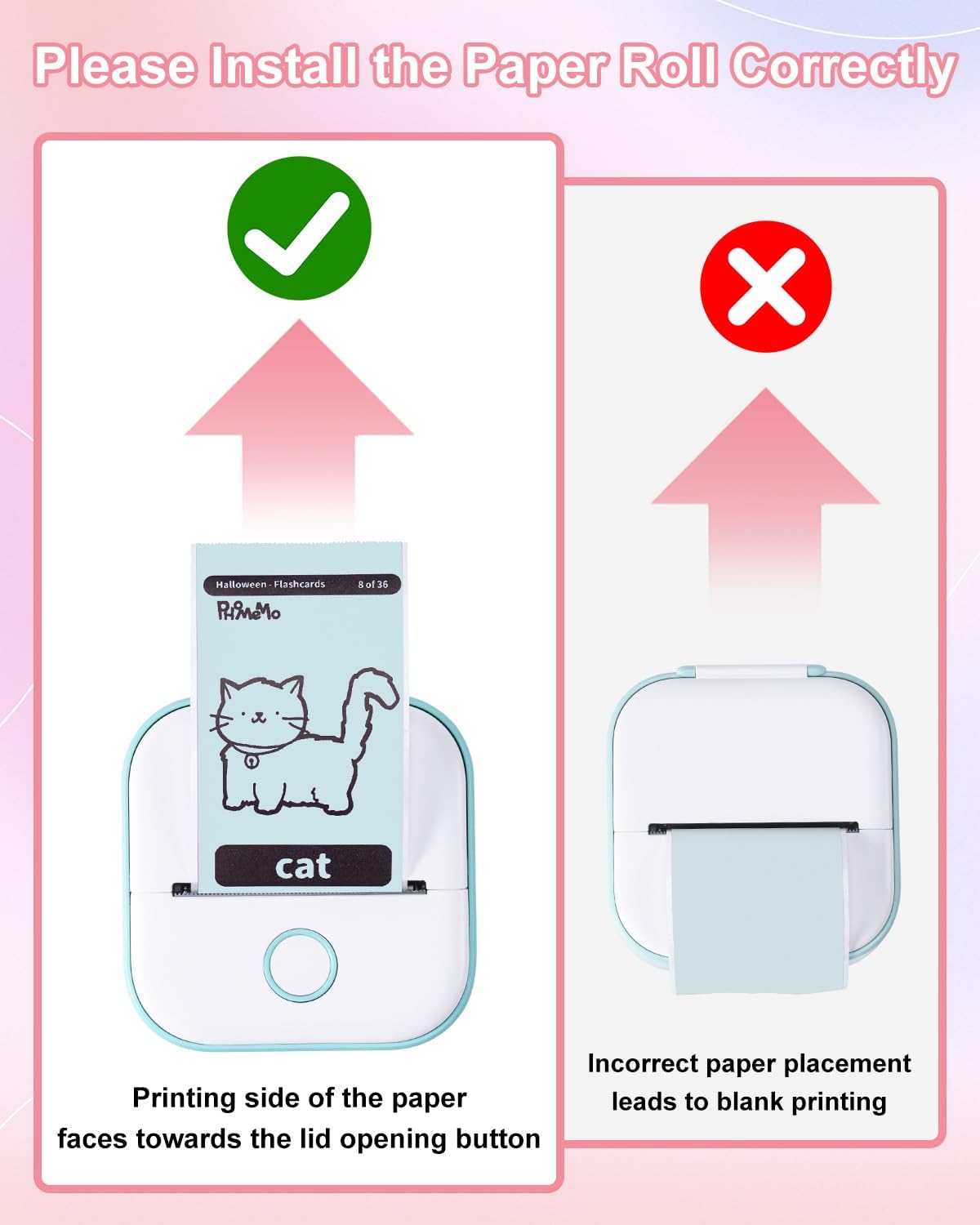 Memoking T02 / M02X / M02L Sticker Paper - Light Green Sticky T02 Mini Printer Sticker Paper Refill, 50 mm x 3.5 m, Keep for 20 yrs, for Journal Photo Study Notes, 3 Rolls