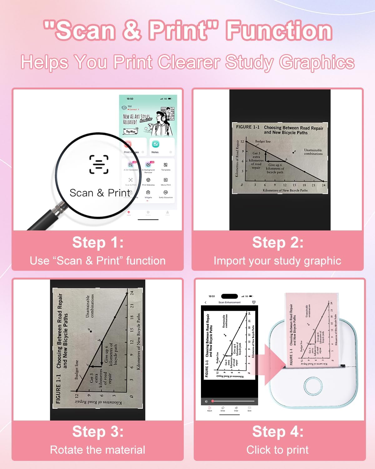 Memoking T02 / M02X / M02L Sticker Paper - Pink Sticky T02 Mini Printer Sticker Paper Refill, 50 mm x 3.5 m, Keep for 20 yrs, for Journal Photo Study Notes, 3 Rolls