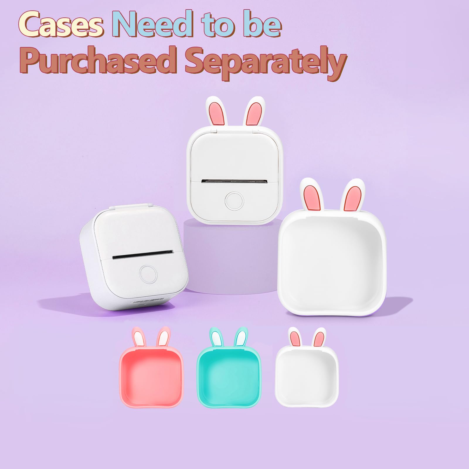 Memoking T02 Protective Case-Bunny Ears Shape Soft Silicone BPA-Free Cute Design Printer Cover, Compatible with T02 Mini Bluetooth Wireless Portable Mobile Pocket Printer, White