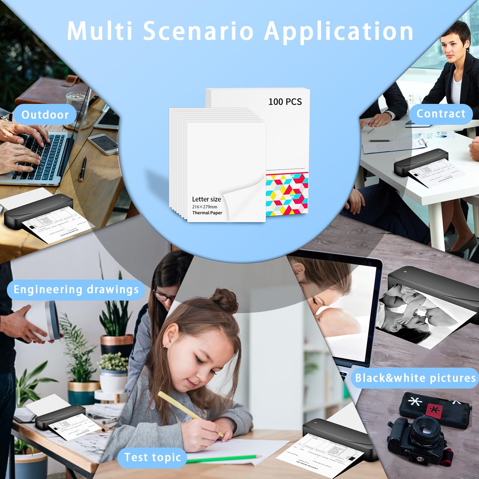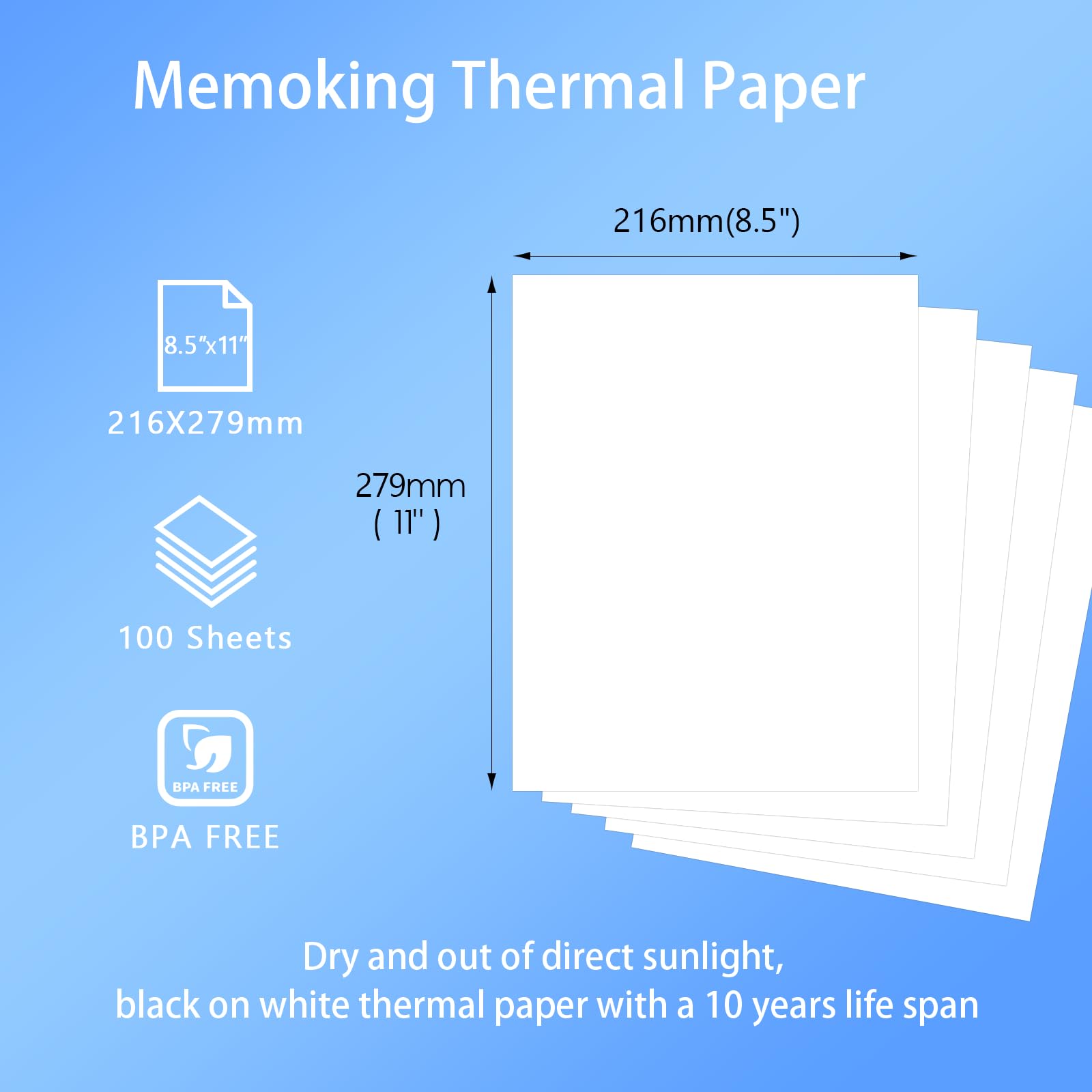 Memoking thermal paper for mobile printer M832/M833/M834/M835/M08F, 10 Years Thermal Paper 216 x 279 mm, Quick Dry Thermal Paper for Contracts, Photos, Technical Drawings, Homework, 100 Sheets