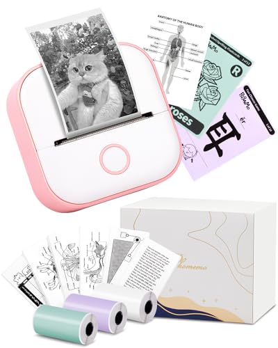 Mini Stampante Portatile con 3 Rotoli di Carta - T02 Stampante Adesiva per Studio, Note, Immagini, Foto, Diari, fai da te, Compatibile con Telefono e Tablet, Rosa