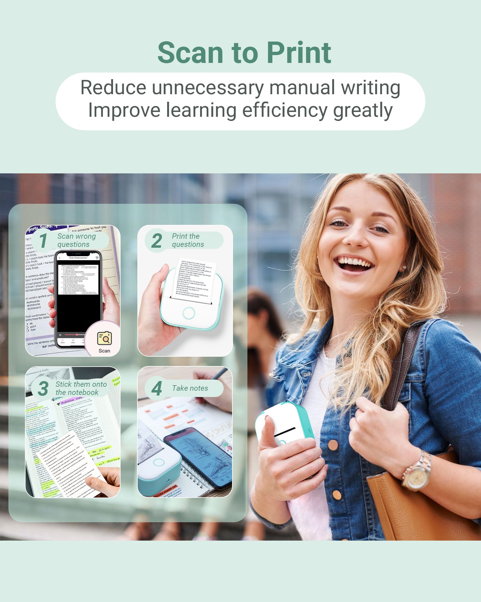 - Mini Imprimante Autocollant pour les étudiants de Tous Niveaux: L'imprimante d'autocollants Memoking permet d'imprimer des notes d'étude, des flashcards d'anatomie, des diagrammes graphiques pour les mathématiques, la chimie, la géographie, la physique et des extraits. La mini imprimante d'autocollants permet aux étudiants de gagner du temps. Utilisez la fonction « Scan » pour imprimer clairement les graphiques d'étude